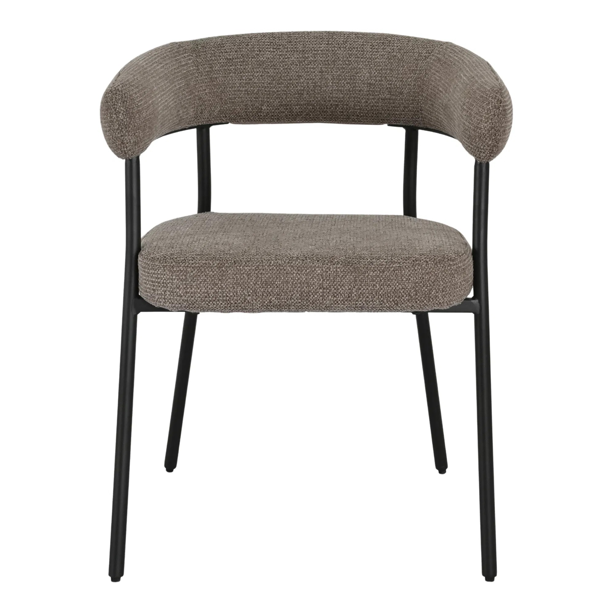 Cette chaise a été pensée comme une pièce de confort, pas seulement une assise. Son dossier en courbe enveloppante crée une posture naturellement détendue, tandis que l’assise généreuse offre un maintien moelleux et stable. Le tissu brun, subtilement texturé, apporte une profondeur élégante et un rendu très “matière”, idéal pour réchauffer un intérieur contemporain.