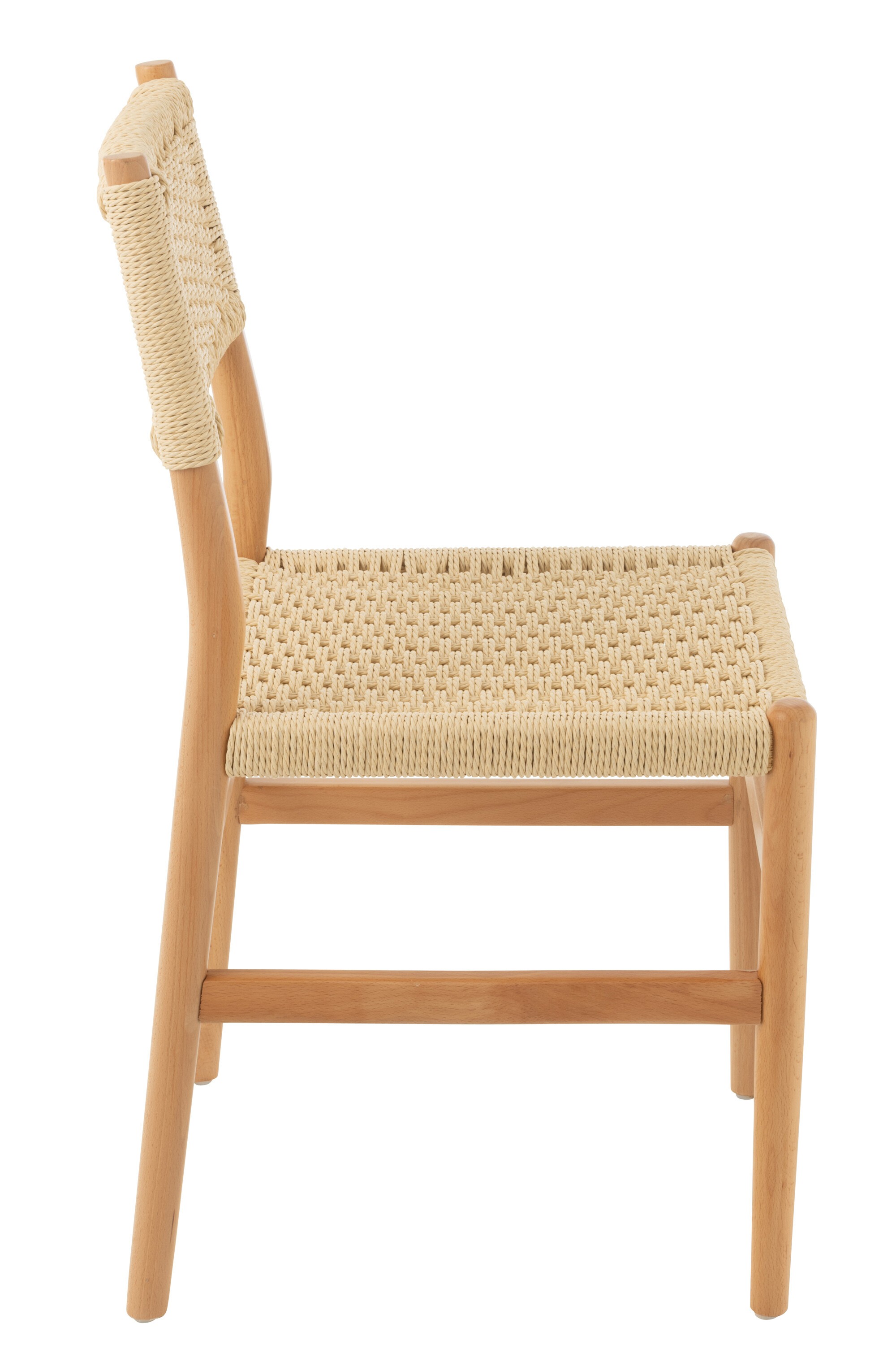 Apportez une touche chaleureuse et authentique à votre intérieur avec cette chaise au design sobre et intemporel. Son piètement en bois naturel associé à une assise et un dossier en corde tressée offre un rendu à la fois artisanal et élégant, parfait pour une salle à manger, une cuisine ou un coin bureau.